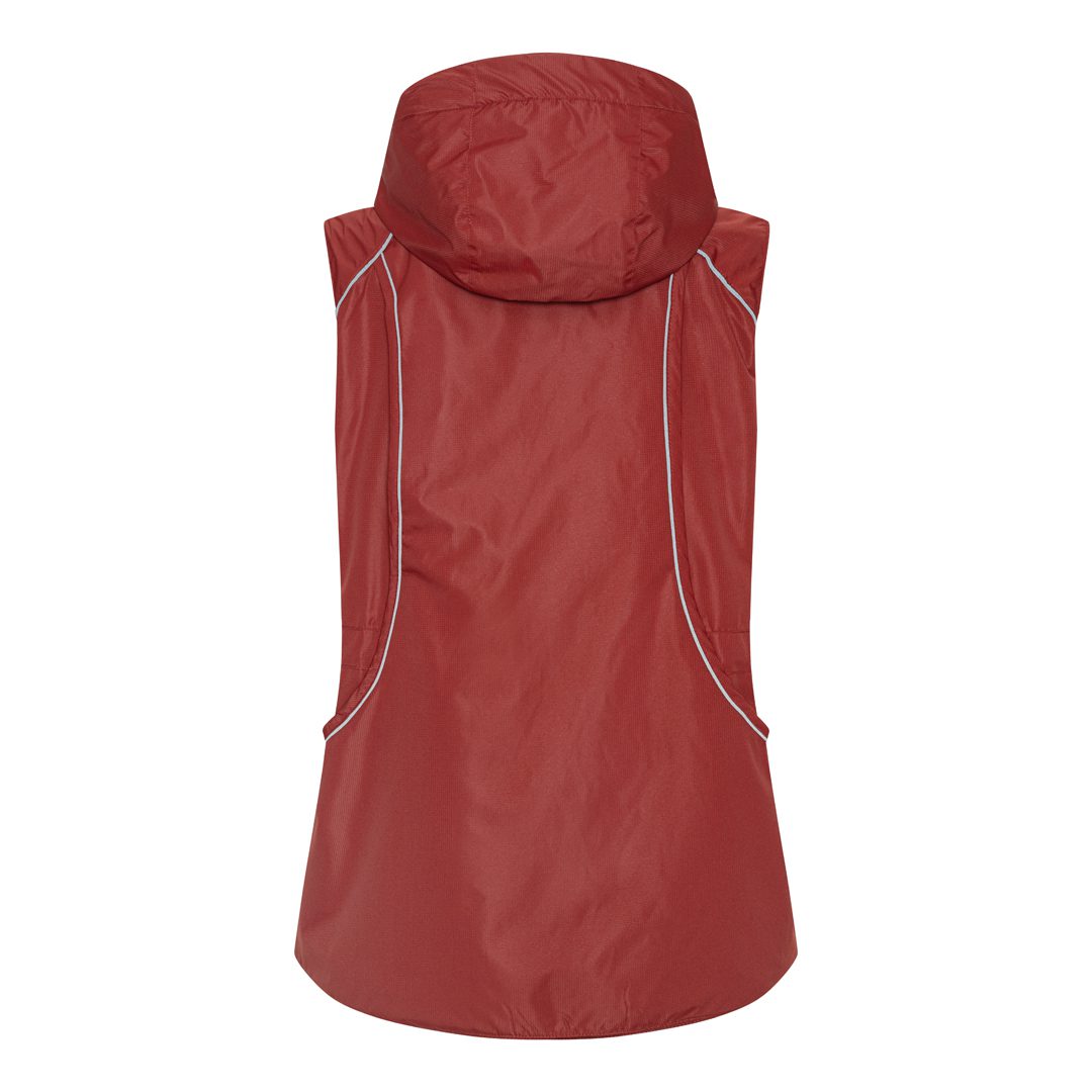 Hele vesten er fremstillet i vind- og vandafvisende materiale, der sikrer komfort i al slags vejr. Store refleksdetaljer giver øget synlighed i mørke og med aftagelig hætte.